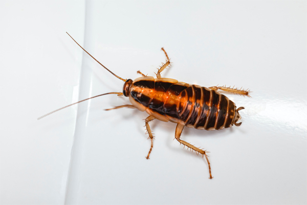 Megjelenése: A 35-40 mm nagyságú, vöröses-barna színű. Sötét színű petetokban 16-28 pete található. A nőstény a petetokot általában 1 napig hordja, majd biztonságos helyen elhullatja. Élettartama 1 év. Igen melegigényes, nedves helyeket kedveli. Az egyetlen faj, amely szárnyait repülésre használja. A helyiségekben inkább a padlószinthez közel helyezkedik el, esetleg a lefolyókban, csatornákban tartózkodik.